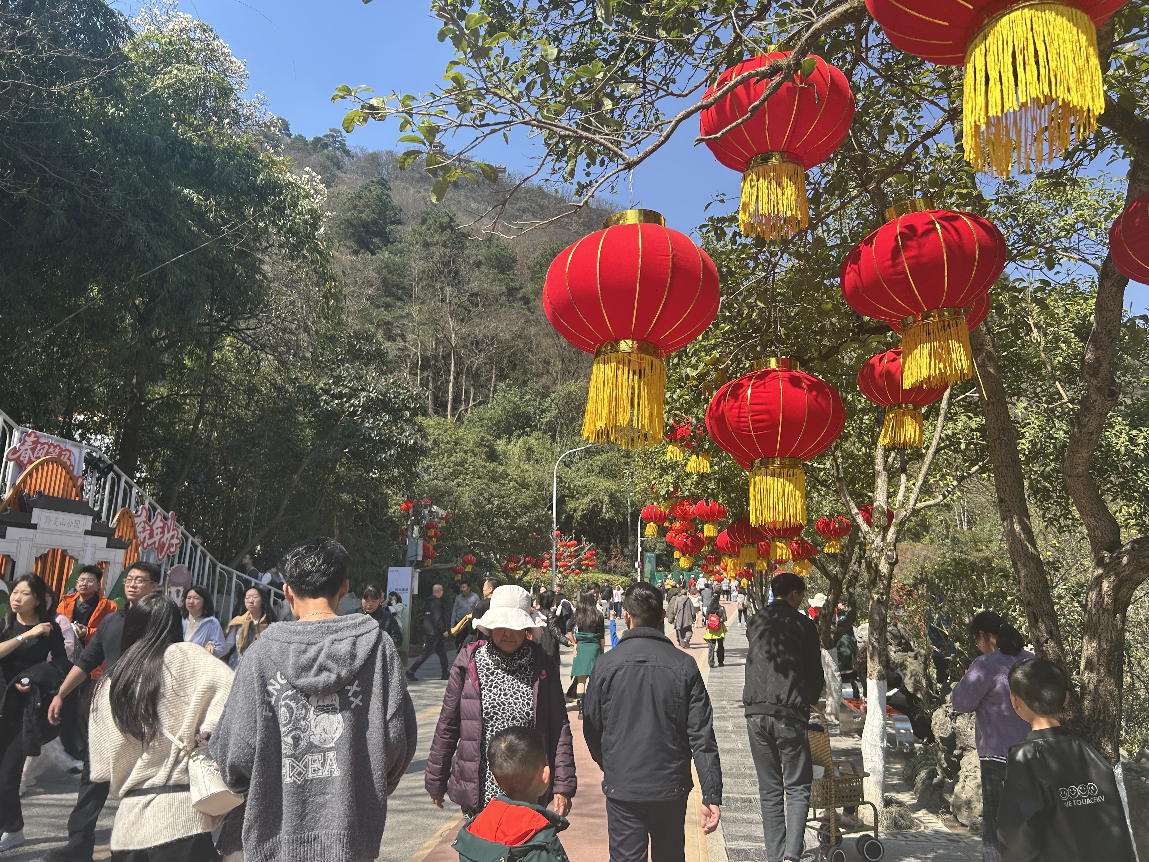 园内游人如织,踏青赏景的市民络绎不绝。76岁的贵阳市民陈郁芬老人,趁着天气晴好漫步于公园内,脸上满是惬意。“如今的贵阳处处是风景,比如观山湖灯会、甲秀楼附近都装扮得很漂亮,年味特别浓厚,玩的、吃的都很丰富,现在都不想出省旅游了。”陈郁芬坦言,随着年龄增长,长途奔波成了负担,现在地铁很方便,家门口的美景,便是最好的新春享受。